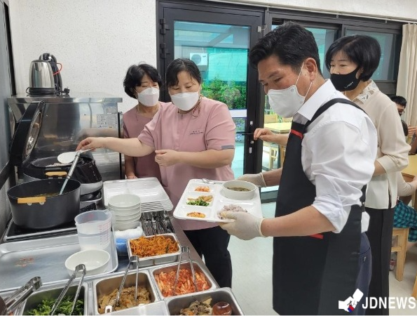 ‘사회적 약자가 소외되지 않는 건강복지’를 시정방침으로 정한 김창규 당선인은 돌봄 부담이 큰 최중증 발달장애인이 생활하고 있는 장애인단기보호센터에서 직접 반찬을 만들고 배식하는 봉사활동과 함께, 시설관계자로부터 애로사항과 장애인복지의 현황과 향후 방안에 대한 이야기를 나눴다.