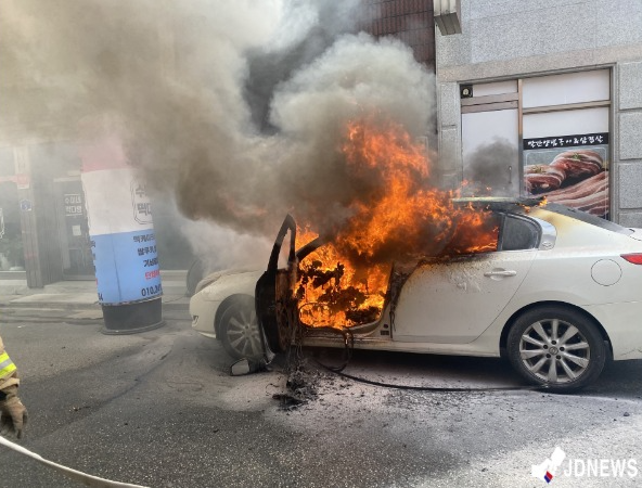 2일 오후 2시 40분경 중앙동의 한 식당가 앞에 정차돼 있던 승용차에서 갑작스런 화재가 발생해 인근 주민들이 대피하는 소동이 벌어졌다.