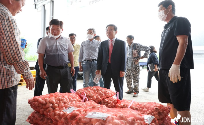 이에 김문근 단양군수는 지난 18일 단양군 농산물 유통가공센터에서 실시하는 단양 마늘 수매 현장을 찾아 더위에 고생하는 관계자들을 격려했다.