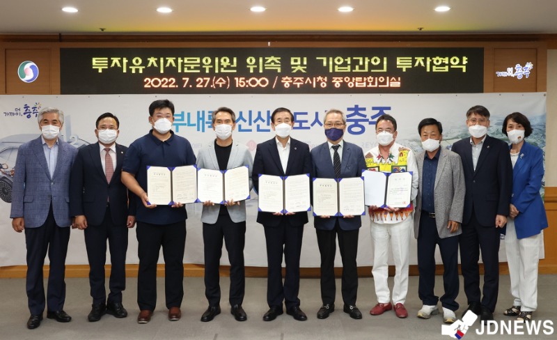 충주시와 충청북도는 27일 충주시청 중앙탑회의실에서 에이치그린파워(주), (주)경민워터컴, (주)이티에스 등 3개 기업과 856억 규모의 투자협약을 맺었다.