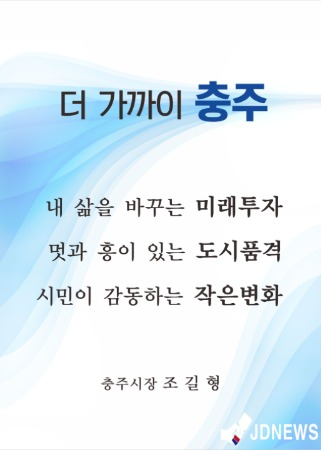 또 ‘멋과 흥이 있는 도시품격’을 갖추기 위해 시민의 문화적 수혜, 지역경제 살리는 관광거점 조성, 명품 숲 및 생태공간 조성, 걷기 좋은 충주 만들기 등을 위해 노력한다.