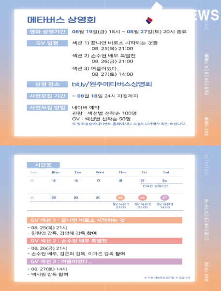 8월 25일 오후 9시에 한원영 감독과 김인혜 감독이 참여한 가운데 GV(관객과의 대화) 행사가 진행될 예정이다.