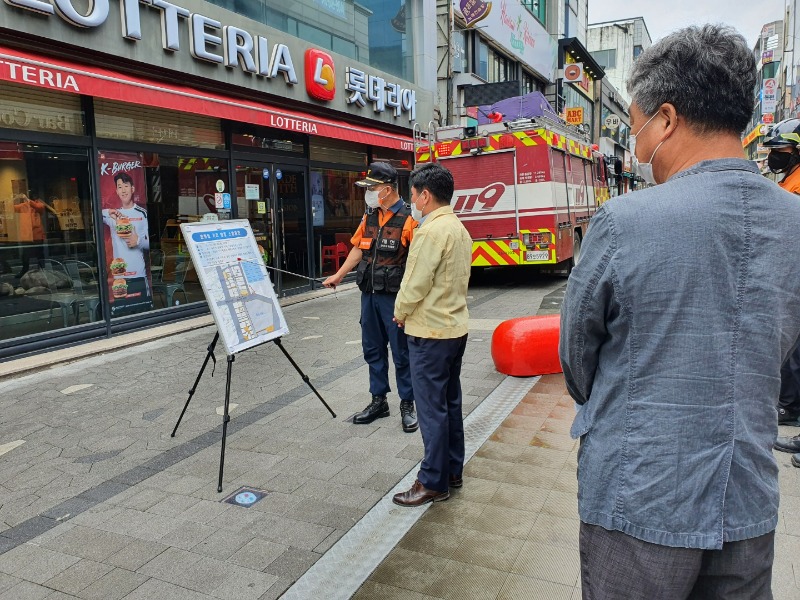 이에 김창규 시장은 "이번 훈련은 소방차 진입을 확인하는 차원에서 실시하는 것"이라며 상인들의 물음에 설명했다.
