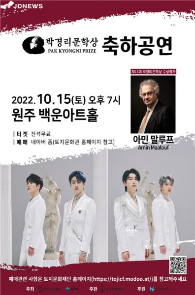 수상자인 아민말루프 Amin Maalouf 작가에게는 박경리문학상 상장과 상금 1억 원이 수여된다.