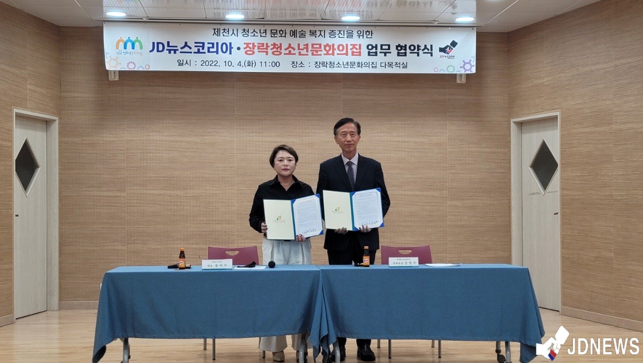 JD뉴스코리아와 충북 제천시 장락청소년문화의집이 지역내 청소년들의 문화예술 복지증진을 위한 업무협약을 체결했다.