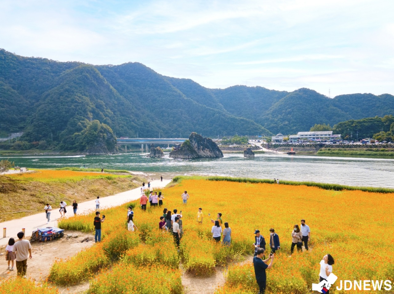 또한 충북 대표 명승지 도담삼봉 맞은편 도담마을에는 약2만㎡의 유휴지에 조성한 황화 코스모스 꽃밭이 만개해 관광객들의 발길이 줄을 이어 장관을 연출했다.