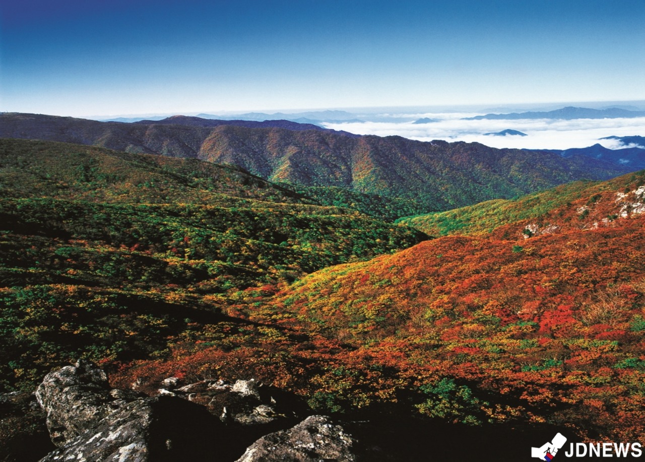 한국의 알프스 단양 소백산은 다채로운 야생화와 유려한 능선이 어어진 푸른 산야로 철마다 아름다운 비경을 뽐내지만 그 중 으뜸은 가을 단풍이다.