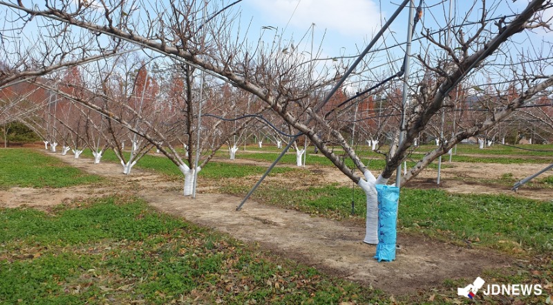 센터는 과수농가에 11월 중 석회보르도액 등을 이용해 월동 전 병해충 방제를 마무리하고 동해를 예방하기 위해 볏짚, 보온덮개, 탄력밴드를 활용한 주간 피복과 수성페인트 도포 등을 이용해 피해를 예방할 것을 권고했다.