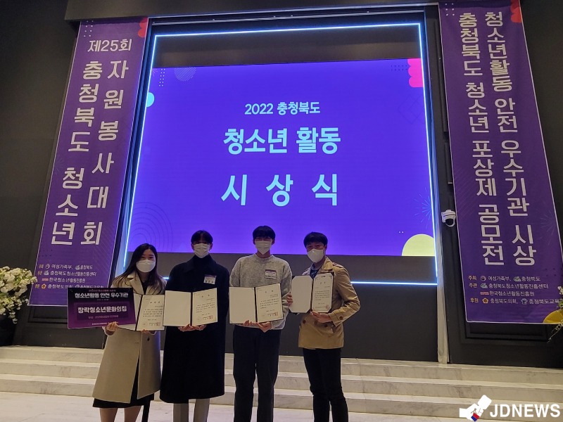 청소년 자원봉사활동을 격려하고 다양한 우수 사례를 발굴하기 위해 개최된 이번 대회에서는, 장락청소년문화의집이 ▲우수터전상(한국청소년활동진흥원이사장상)을, 소속 동아리 JOTA가 ▲동아리단체상(충청북도청소년진흥원장상)을, 소속 봉사자 강민수 군이 ▲우수청소년상(충청북도청소년종합진흥원장상)을 각각 수상했다. 여기에 작년 9월부터 올해 8월까지의 봉사 누적시간을 기준으로 수여되는 ▲Dovol 올해의 봉사상에서 원형상 군(제천시청소년센터)과 강민수 군(장락청소년문화의집)이 차례로 1, 2등을 모두 휩쓸었다.