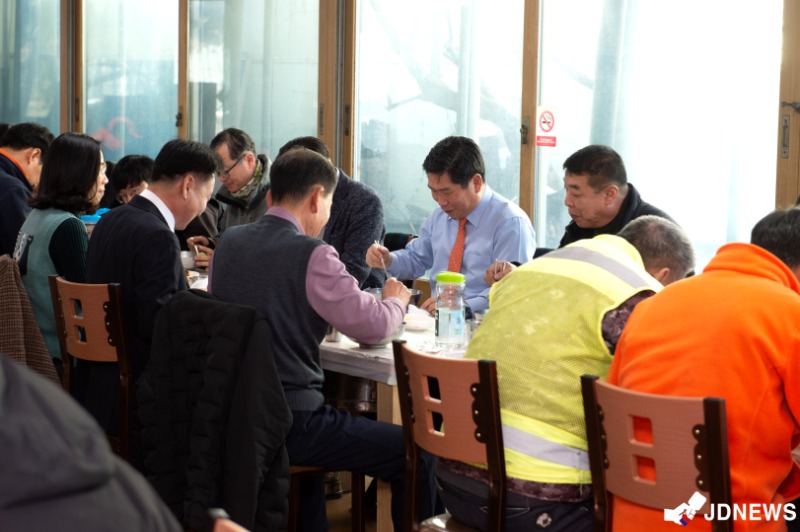 지난 2일 진행한 이번 간담회에서 김 시장은 미화원들과 떡만둣국을 함께 나누며, 매일 새벽을 열어 청결하고 깨끗한 제천시를 만드는 환경미화원들을 격려하고, 업무 고충을 청취하는 시간을 가졌다.