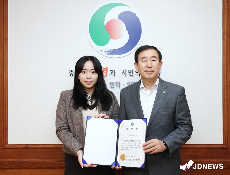 조길형 충주시장은 9일 충주상업고등학교에 재학 중인 이수민(여, 2학년) 학생과 가족들을 시장실로 초청해 표창장을 직접 수여했다.
