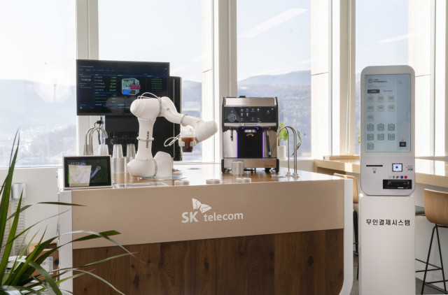 SK텔레콤은 국내 로봇 제조 선두 업체인 두산로보틱스와 함께 무인 커피 로봇 서비스인 ‘AI 바리스타 로봇’을 출시했다고 26일 밝혔다.