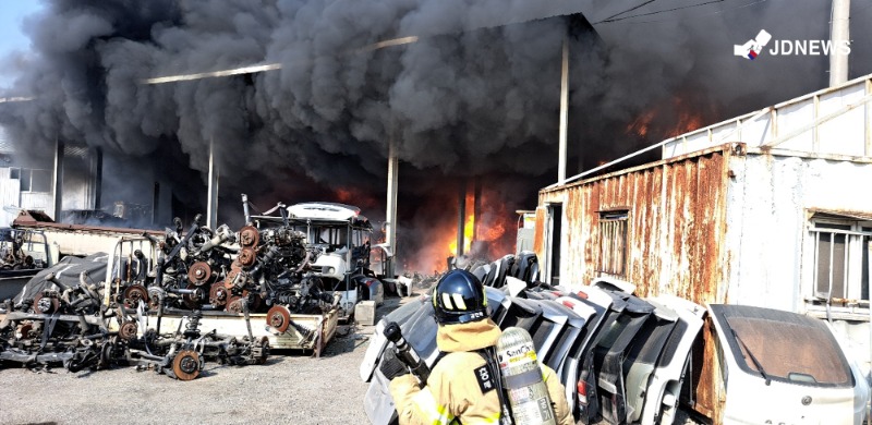제천 한 폐차장에서 불, 3300여만원 재산피해 김경훈 기자 발행 2023-02-24 15:19 Facebook Twitter band 네이버블로그 카카오스토리 카카오톡 글자작게 글자크게 ▲ 제천 폐차장 화재24일 오전 11시40분쯤 충북 제천시 송학면 시곡리 한 폐차장에서 불이 났다.불은 작업장 1동(155㎡)을 태우고 30여분 만에 꺼졌다. 인명피해는 없었지만 소방서 추산 3300만원의 재산피해가 났다.경찰과 소방당국은 절단작업 중 차량 내부에서 불이 나 확대된 것으로 보고 정확한 화재 원인을 조사하고 있다. <저작권자 ⓒ JD뉴스코리아, 무단 전재 및 재배포 금지> 김경훈 기자 다른기사보기