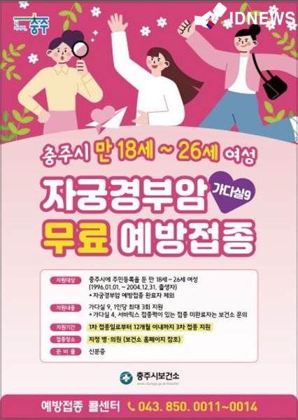 - 충주시에 주민등록을 둔 만 18세~26세 여성, 가다실9 무료 접종