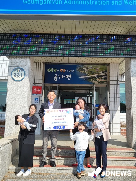 진광주 지역사회보장협의체 위원장은 “저출산 위기 속 세쌍둥이의 출산은 우리 금가면의 큰 기쁨”이라며 “첫째까지 4명을 동시에 키우려면 고생이 되겠지만, 이 아이들이 커서 가정의 행복이자 금가면의 자랑, 국가의 기둥이 되리라고 믿는다”고 축하의 인사를 보냈다.