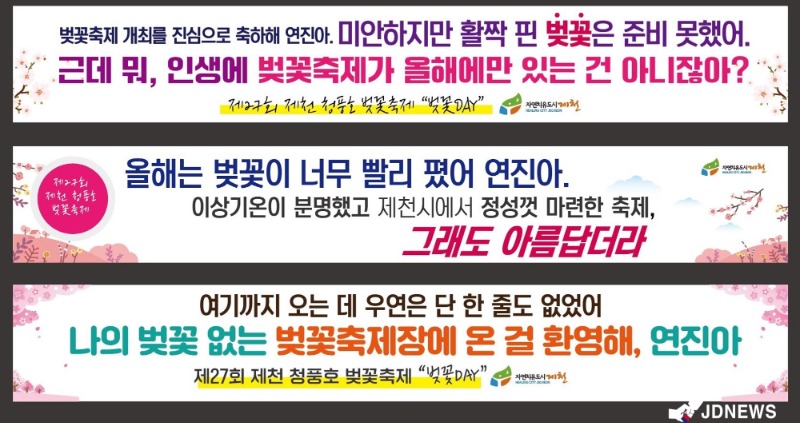 여기에 주민들도 합심했다. 청풍면 벚꽃축제추진위원회 주도 아래 주민이 직영하는 마을장터에서 벚꽃치즈떡볶이, 제천명물 빨간오뎅 등 다양한 먹거리를 준비해 방문객들의 입맛을 사로잡을 전망이다.