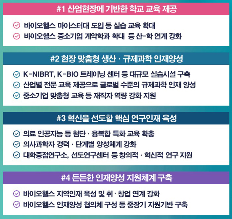 더불어 (가칭) 바이오헬스 인재양성 협의체 구성 및 정책연구 등 중장기 지원기반도 구축할 계획이다.