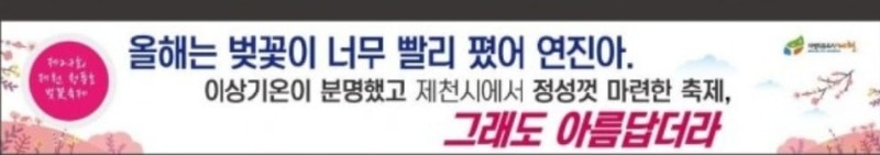 전국 지자체들이 개화시기를 정확히 예측하지 못해 당황스러워하는 것은 비슷한 현상이나 26년간 축제를 운영해온 청풍벚꽃축제추진위원회의 대응은 실망스러운 수준이다.