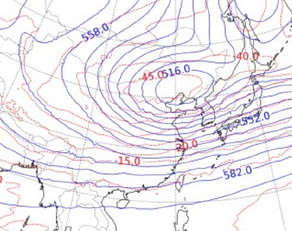 벚꽃은 온도에 따라 개화하기 때문에 대한민국 등고선을 기준으로 온도를 측정하는 일은 그리 어렵지 않다. 파이선을 이용한 대기 기상도를 그려봐도 1~2일 차로 개화 시기를 예측할 수 있다.