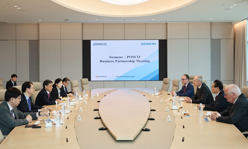 이어 양사 상호 호혜적 구매 확대를 위해 포스코는 2021년 론칭한 미래 친환경 에너지의 생산, 수송 저장에 적용되는 그린어블(Greenable)* 브랜드를 소개하고 지멘스의 친환경 프로젝트 니즈에 적극 대응하기로 하였으며, 지멘스에서도 포스코에 고성능·고효율 제어시스템 공급을 제안하는 등 기존 비즈니스의 확대를 논의했다. 또한 양사는 공동의 관심 분야인 스마트팩토리 및 탄소중립 분야에서도 협력하기로 했다.