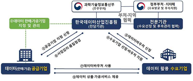 데이터바우처 지원사업은 기업·기관에 데이터 활용 비즈니스 및 제품·서비스 개발에 필요한 데이터를 바우처 형식으로 지원하는 사업이다.
