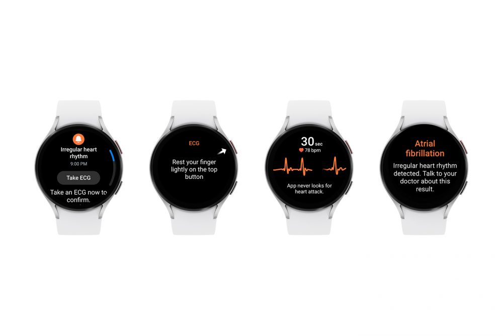 또한 , 정확한 심장 박동 측정을 위해 갤럭시 워치에 탑재된 ‘ 심전도 ’ 기능을 실행하라고 추가로 알려주며 , 사용자는 삼성 헬스 모니터 앱의 ‘ 심전도 (ECG) 모니터링 ’ 기능에 들어가 불규칙한 심장 리듬의 히스토리도 확인할 수 있다 .