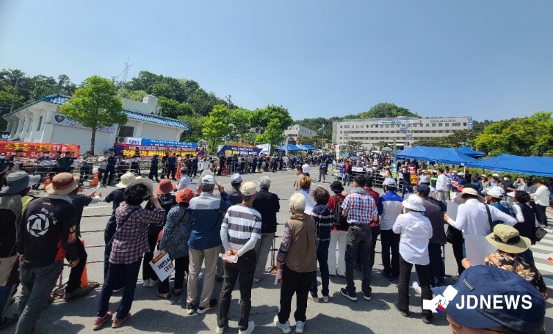 30도가 넘는 땡볕에서 더위를 참지 못한 시위대가 철수하면서 도지사는 차를 돌려 다시 제천시청으로 들어갔다.