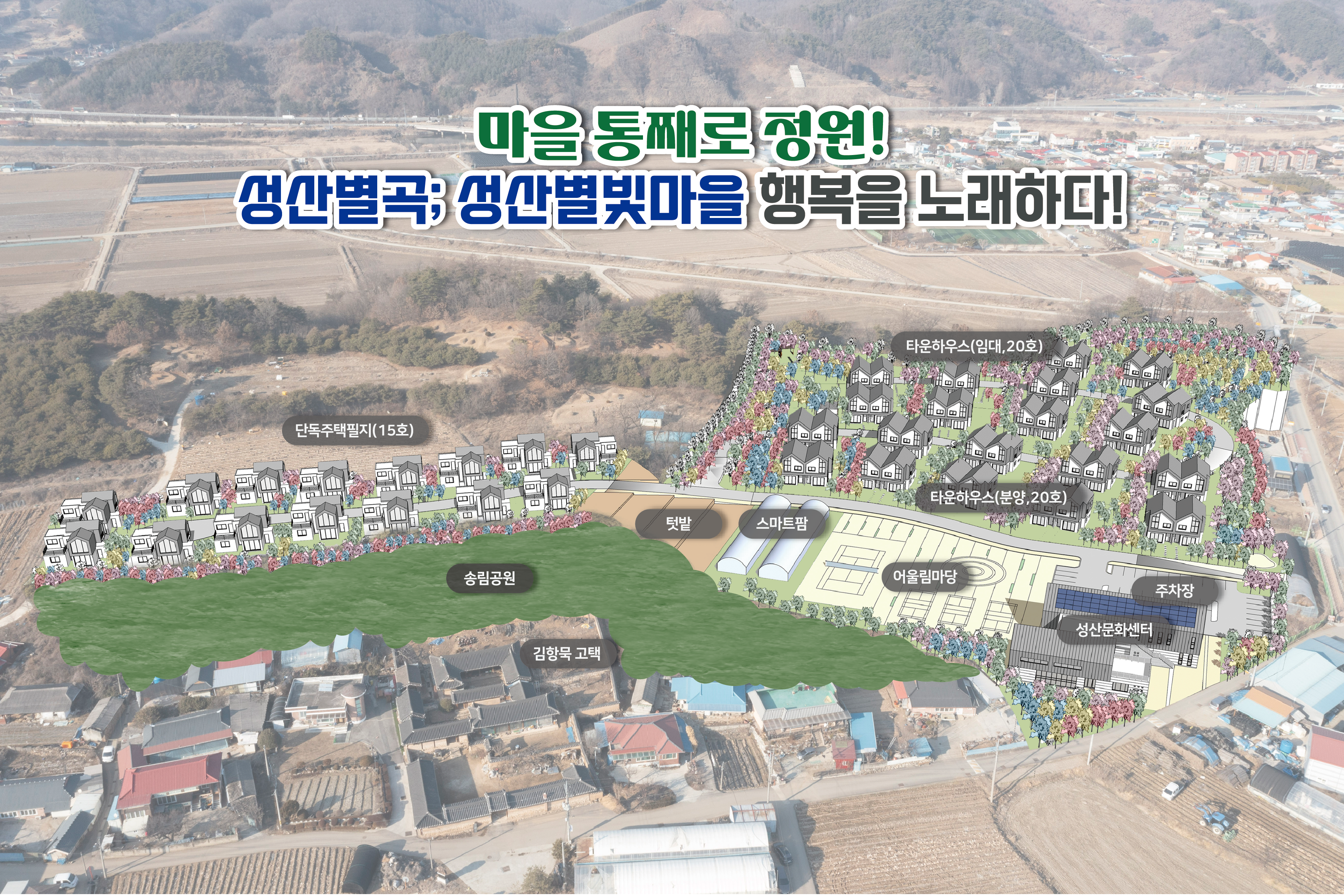 이번에 선정된 충북 1호 지역활력타운 조성사업인 괴산군 ‘성산별곡; 성산별빛마을’ 사업은 지속적인 인구감소와 노령화 및 귀농·귀촌 수요에 대응하여 아름답고 쾌적한 주거단지를 조성하기 위해 기획된 사업으로 수도권·대도시 은퇴자를 대상으로 주택(임대 20호, 분양 20호, 필지 분양 15호), 성산문화센터, 방문객 주차장, 스마트팜, 케어팜 등을 조성할 계획이다.