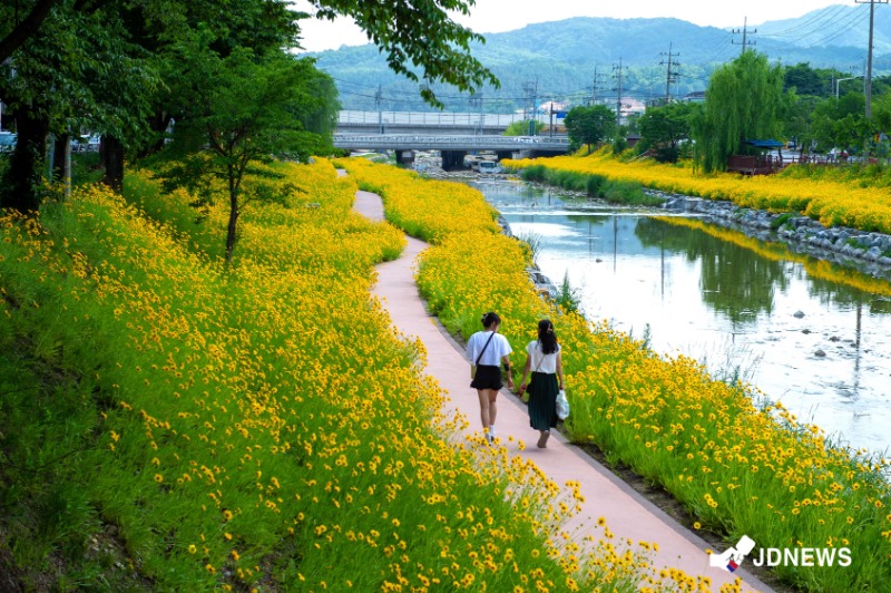 시는 시민들이 편하게 산책을 즐길 수 있도록 하소천을 친환경 생태공간으로 탈바꿈시켰다. 하소천을 정비하고 신당교부터 용두교까지 1.5km에 금계국 25만본을 심어 지속적으로 관리해왔다. 그 결과 올해도 천만송이 금계국이 만개하며 금빛 물결 향연이 펼쳐지고 있다.