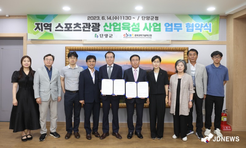 이번 협약식은 단양군의 지역특화 스포츠산업인 패러글라이딩과 수상레포츠 기반을 조성하는 가칭 “리버스카이(RiverSky)수변공원 조성사업” 협력을 목적으로 단양군, 충북과학기술혁신원 등 관계자들이 참석했다.