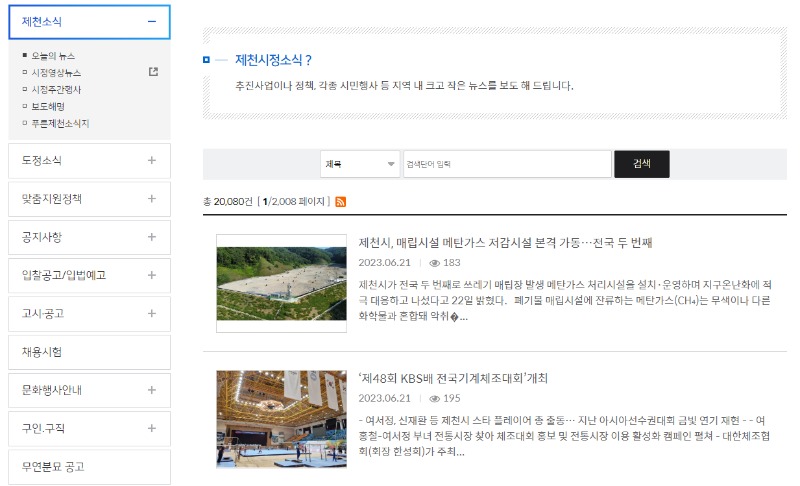시정뉴스 송출은 제천시청 홈페이지인데...