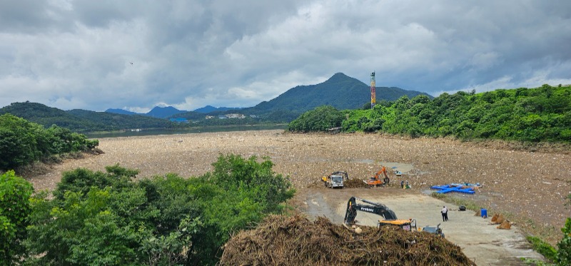 부유물은 나무, 풀,  플라스틱, 비닐, 스티로폼, 각종 생활쓰레기 등이다.