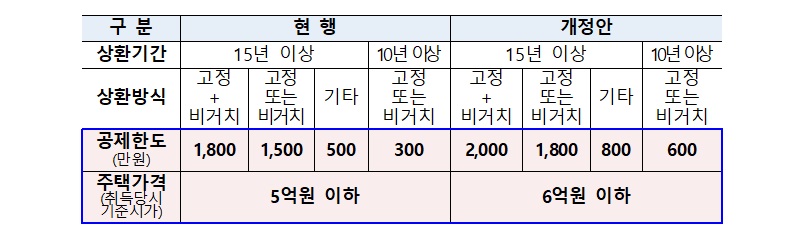 이를위해 장기 주택저당 차입금 이자상환액 소득공제 한도를 상향 조정한다.