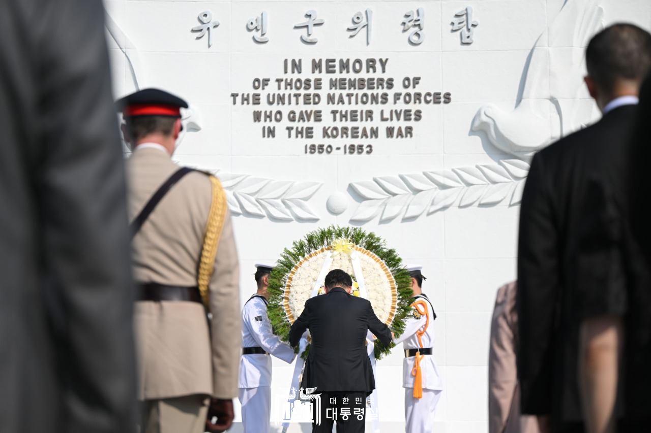 한편, 윤 대통령 부부는 기념식에 앞서 이날 오후 부산 유엔기념공원을 찾아 위령탑을 참배하고 대한민국을 위해 헌신한 유엔군 전몰장병들을 추모했다.