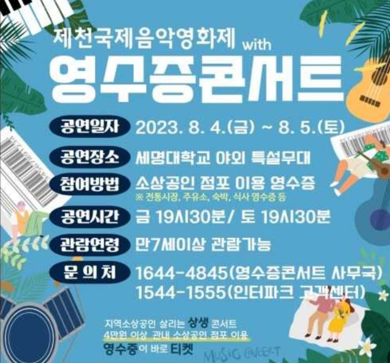 영수증 콘서트는 4일, 5일 2일간 세명대 야외특설무대에서 제천국제음악영화제의 시작을 알리고 지역경제에 기여한다는 명목으로 마련했다.
