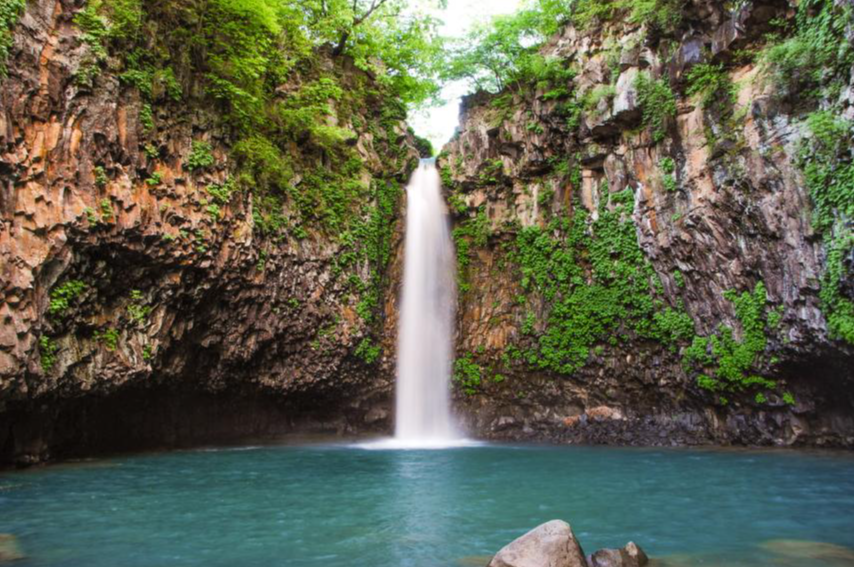 「연천 재인폭포」는 용암이 식으면서 생긴 원형의 검은 현무암 주상절리와 절벽 아래 떨어지는 시원한 물줄기, 협곡을 지나 한탄강으로 이르는 지형이 조화를 이뤄 아름다운 자연경관을 자랑하는 곳이다. 특히 재인폭포라는 명칭은 줄을 타는 광대 재인(才人)과 부인의 사랑 이야기에서 유래한 것으로 전해져 흥미를 자아낸다.