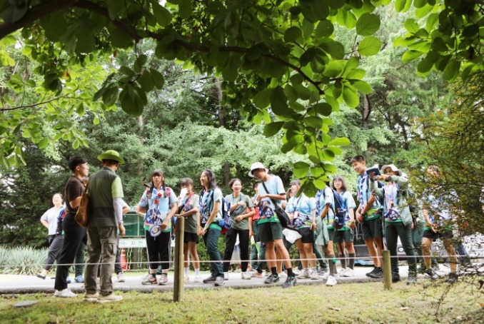 산림청은 9일 ‘2023 새만금 세계스카우트잼버리’ 참가자들이 국립수목원 3곳을 찾아 숲 탐방 프로그램에 참여했다고 밝혔다. 이날 수목원을 찾은 참가단은 사우디아라비아, 불가리아, 대만 등 3개국 170여 명이다.