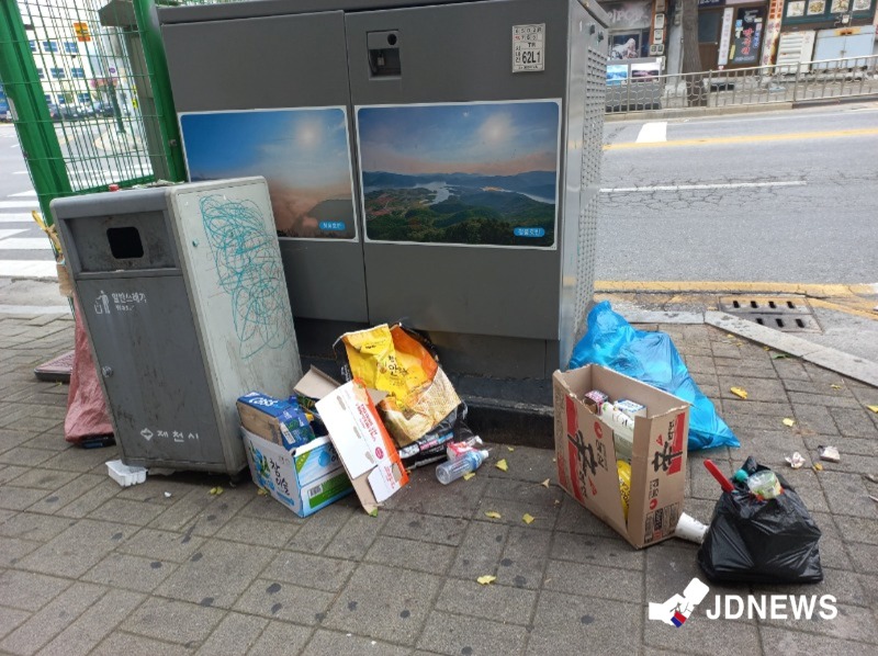 아침일찍 쓰레기를 내놓지 않으면 다음날까지 수거가 되지 않아 얼마전 치러졌던 국제행사(제천국제음악영화제)때도 관람객들이 눈살을 찌푸리였다는 이야기도 나왔다.