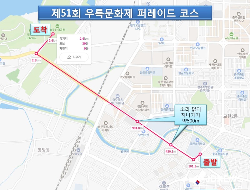 - 삼원초등학교부터 탄금공원까지 2.6km 행진