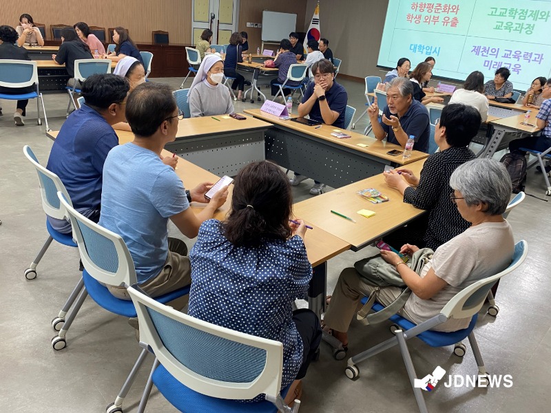 주제 발표에 이어 참석한 지역 시민이 모두 함께 참여하는 고교 평준화 관련 주제별 토론이 이어졌다. 하향평준화와 외부 유출, 고교학점제와 교육과정, 대학입시, 지역의 교육력 분야로 주제를 나누어 이루어진 토론은 예정된 시간을 넘길 정도로 치열하게 열띠게 진행되었다.