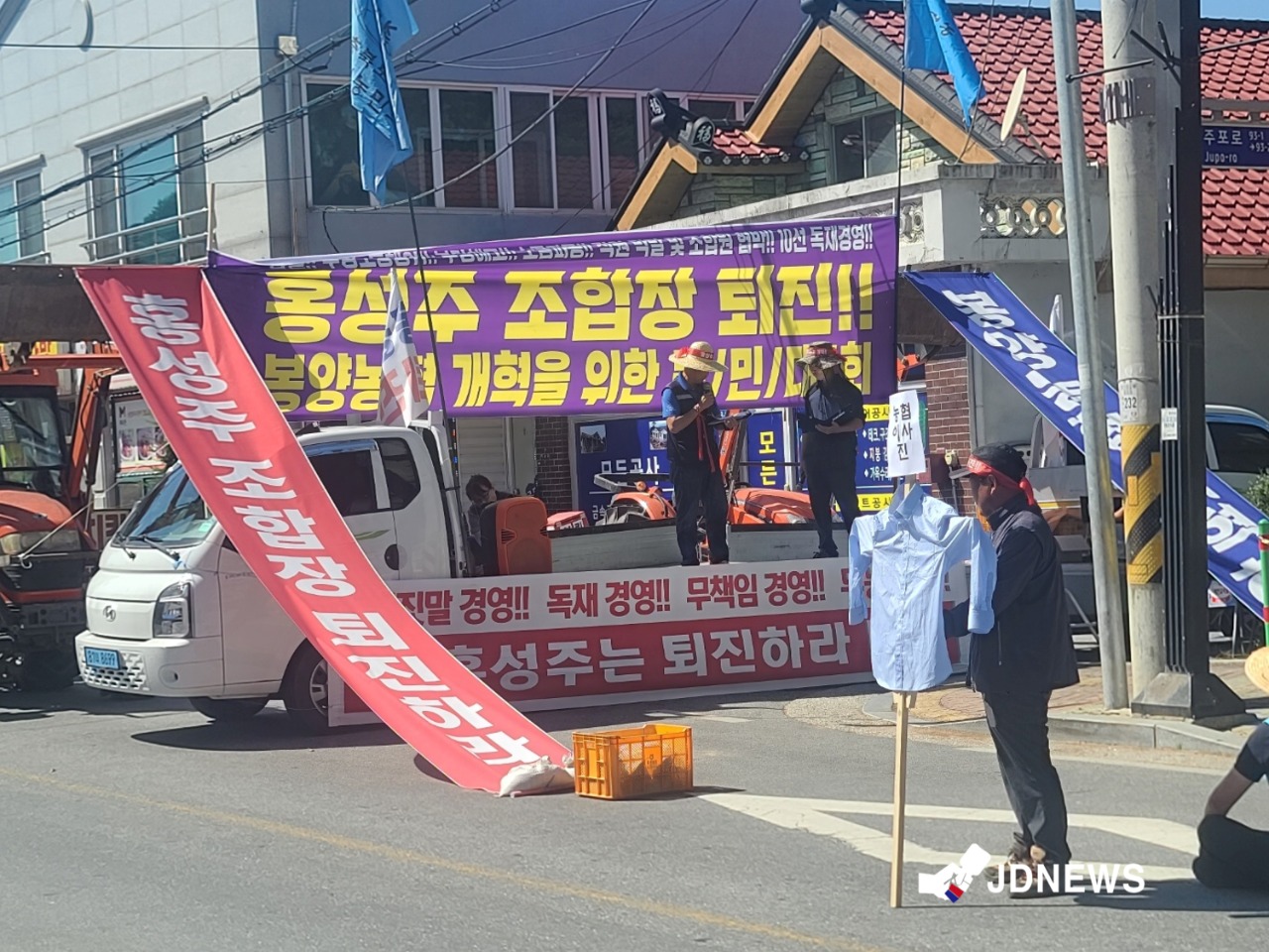 전농 회원들은 3월 22일부터 홍 조합장의 퇴진을 요구하며 봉양농협 인근에서 7개월째 천만 농성을 이어가고 있다.