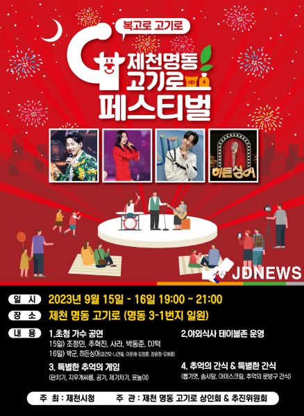 제천시 관계자는 “금번 고기로 페스티벌을 통해 명동고기로를 전국에 널리 알려 관광객들이 즐겨 찾을 수 있는 골목이 될 수 있는 계기가 되었으면 한다”고 밝혔다.
