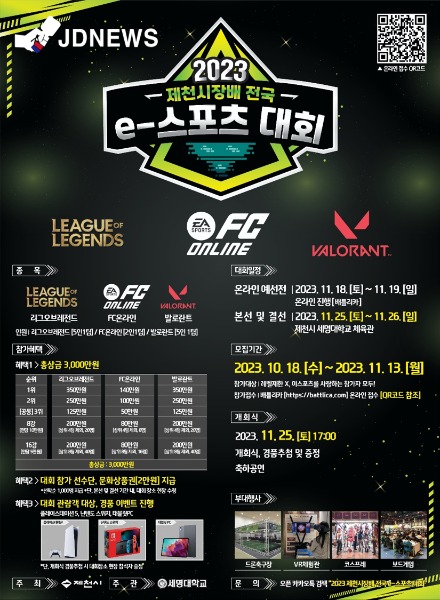 - 11월 25~26일 2일간 세명대 체육관에서.. 2023 제천시장배 전국 e-스포츠 대회 개최