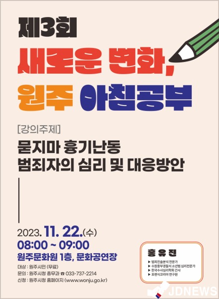 또한, 개인정보 동의 시 향후 열리는 ‘새로운 변화, 원주 아침공부’운영에 관한 정보를 문자로 받아 볼 수 있다.