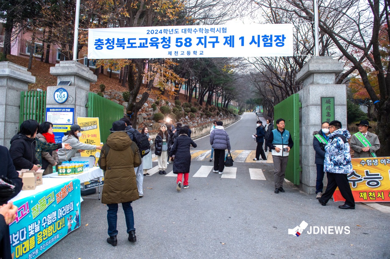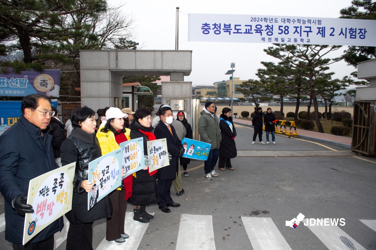 김창규 제천시장과 관계 공무원, 제천시의회 이정임 의장을 비롯한 시의원들도 각 수능시험장을 돌아보며 응시생을 격려했다.