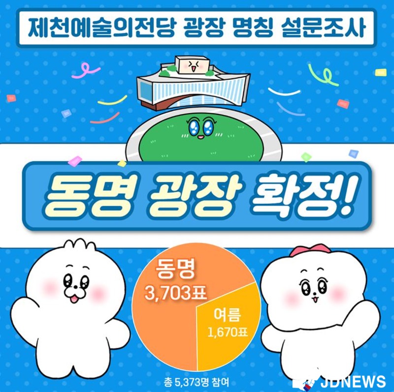 시는 동명과 여름 2개의 명칭 대상으로 지난 11월 1일부터 11월 30일까지 온라인으로 진행된 설문조사에서 총 5,373명의 시민이 참여했으며 이 중 3,703명이 동명광장 명칭에 투표해 최종 확정됐다.