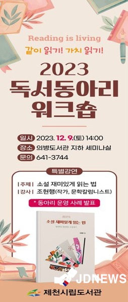 특강으로 <소설 재미있게 읽는 법>의 조현행 작가를 초청해 성장하는 문학읽기는 무엇인가에 대해 강연을 듣고, 1년간 독서모임을 우수하게 활동한 독서동아리들이 사례를 발표하는 시간을 갖는다.