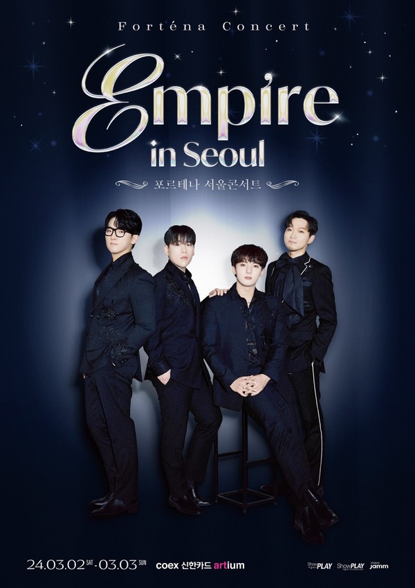 포르테나의 첫 번째 단독 콘서트 'Forténa concert Empire in seoul'이 오는 3월 2일, 3일 양일간 coex신한카드artium 에서 총 2회 개최된다.