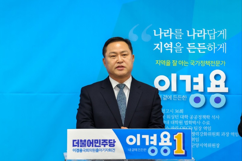 이경용 예비후보는 22일 기자회견을 갖고, 지방분권 정책은 뒤집혀 다시 수도권만 확대되고 지방소멸은 더 가속가 되어가고 있고,. 국정을 잘 이끌어 달라는 국회의원의 외침에 재갈을 물리고 강제로 끌어내고, 국격이 끝없이 추락하고 있으며. 민주주의는 후퇴하고, 민생은 무너지고 있가고 말했다.. 이런 나라를 제자리로 돌려놓기 위해 저는 출마를 결심을 밝혔다.