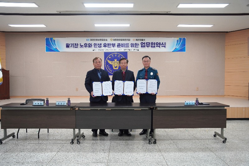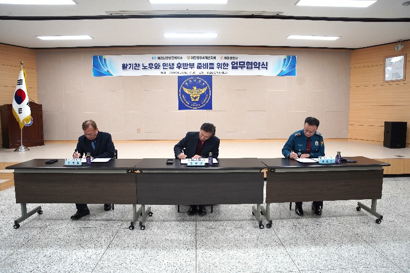 제천경찰서(서장 임경호)는 24일 소회의실에서 제천단양상공회의소(회장 한정철) 및 재향경우회 제천지회(지회장 권용걸)와 퇴직경찰관의 일자리 창출을 위한 업무협약을 체결했다.